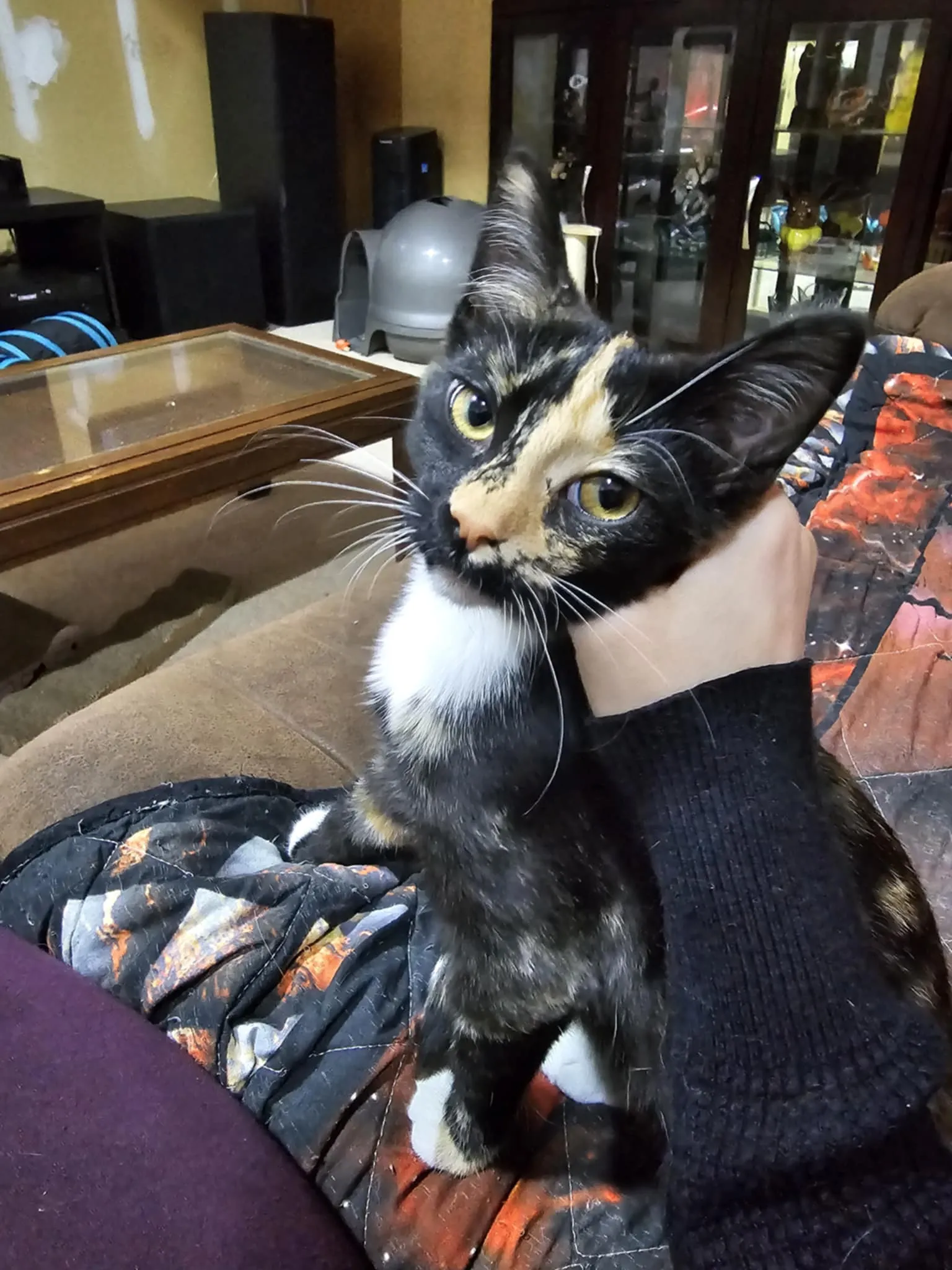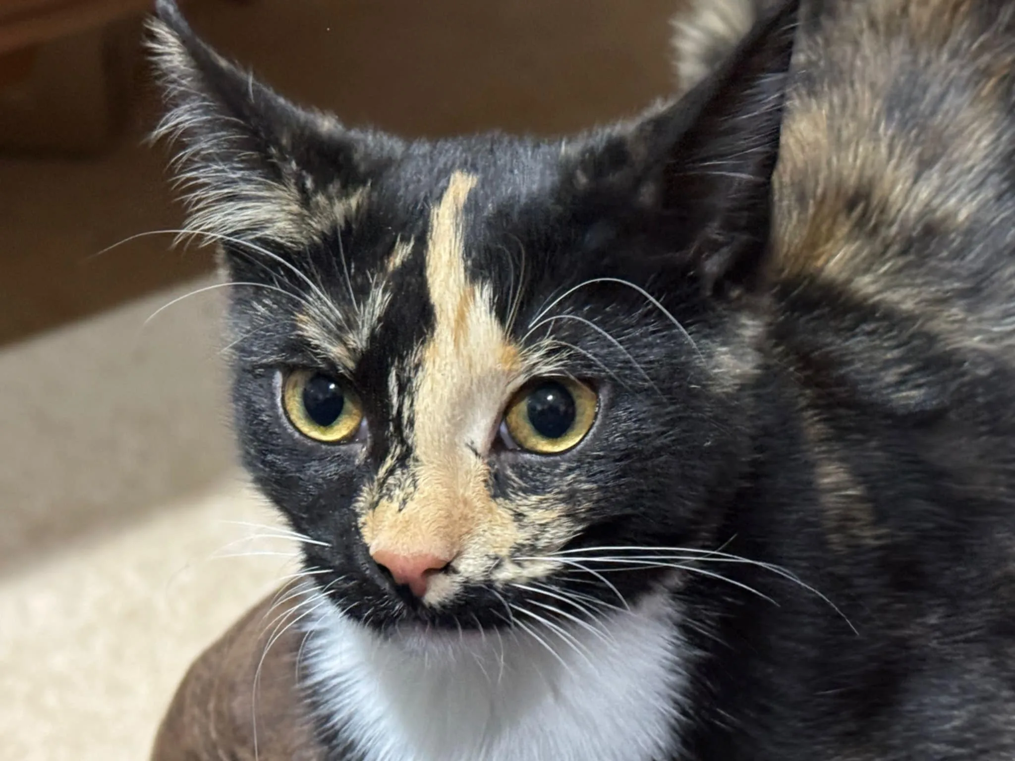 🌙 Luna is a tortoiseshell beauty with a curious heart and a gentle soul. She’s shy at first—one of those cats who takes her time—but once she decides you’re safe and worthy (and she will), her affection and loyalty run deep. She’s playful, affectionate, and incredibly loving once she knows you’re hers.
